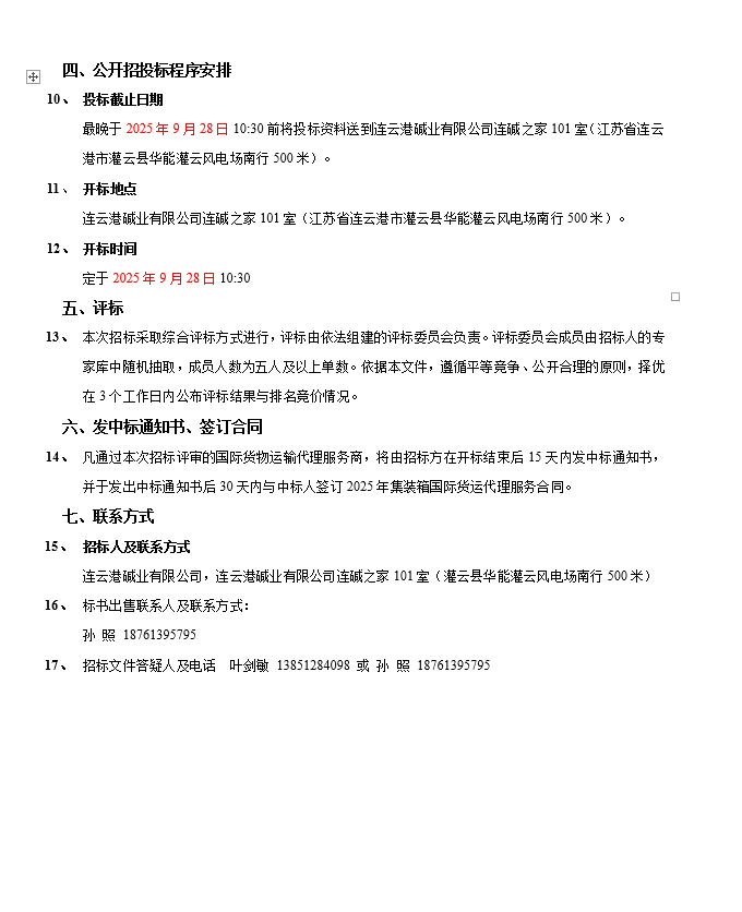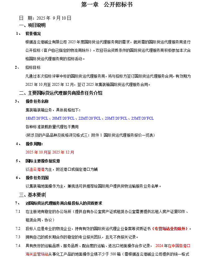 連云港堿業有限公司集裝箱國際貨運代理服務商項目招標公告