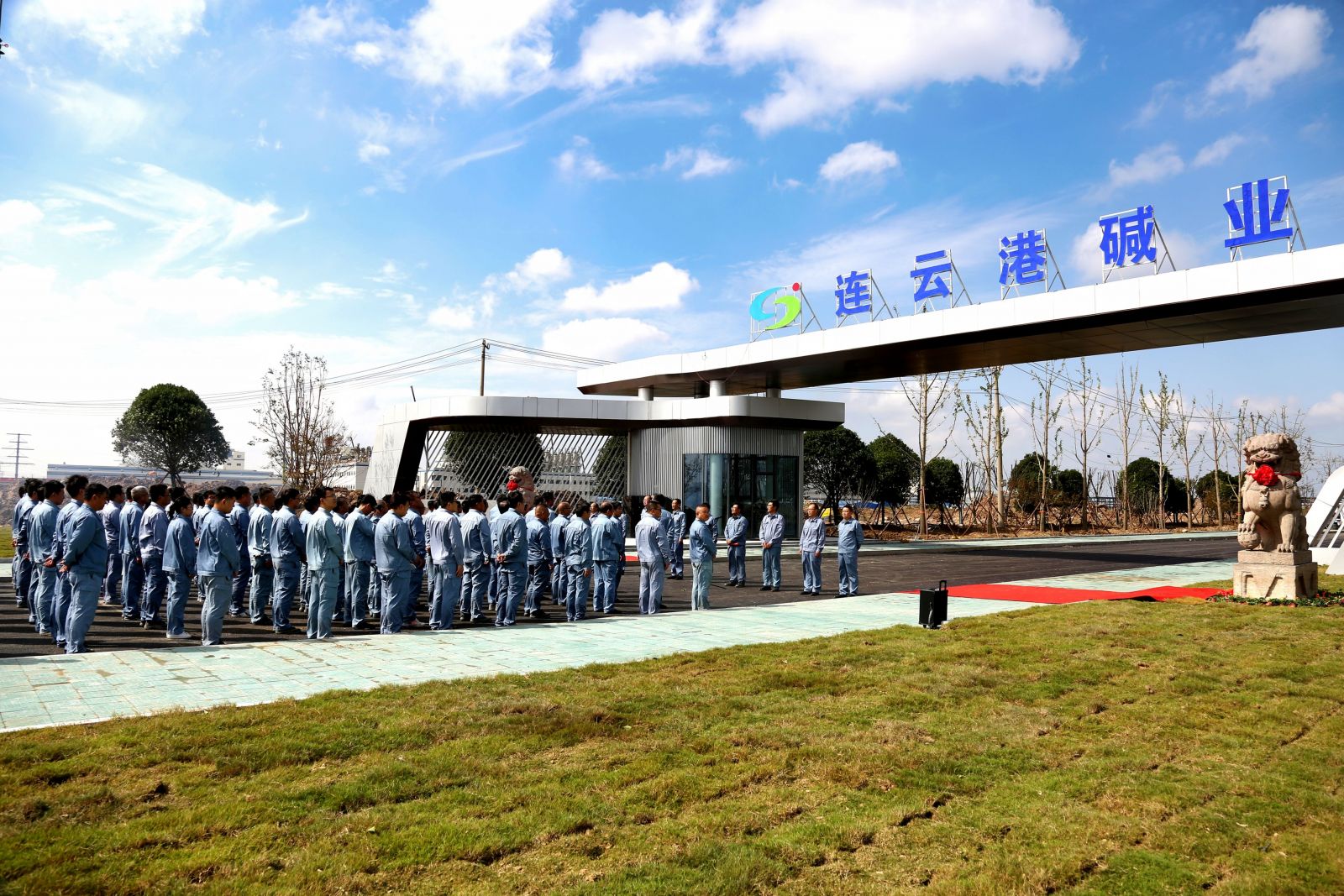 儀式上,姜自成、延立強(qiáng)為廠前區(qū)石獅揭幕。據(jù)悉,這一對(duì)石獅與老堿廠風(fēng)雨兼程近三十年,見證了老堿廠的興起、輝煌和衰落,是堿業(yè)公司歷史傳承的一分子,是堿業(yè)公司企業(yè)文化的一分子,是全體堿業(yè)人深刻記憶的一分子。如今,這對(duì)石獅落成在全新的堿業(yè)公司,必然成為堿業(yè)公司新發(fā)展的守護(hù)者,必然成為堿業(yè)公司新篇章的見證者,必然成為全體堿業(yè)人新精神的守望者。它們時(shí)刻提醒著我們不忘初心、銘記歷史,同時(shí)也鼓舞著我們勇往直前、開拓創(chuàng)新。